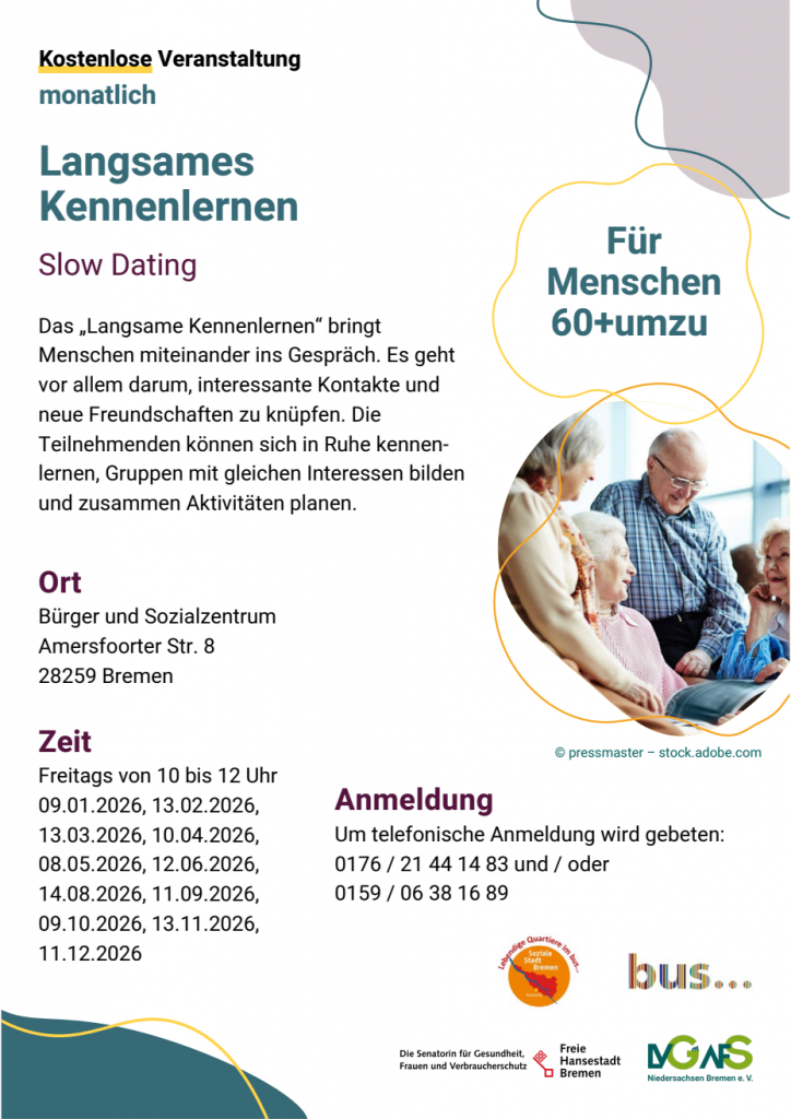 Am 13.03.2026 findet im bus… das nächste Slow Dating statt. Das „langsame Kennnenlernen“ bringt Menschen miteinander ins Gespräch. Kommen Sie und lernen Sie neue Leute kennen.